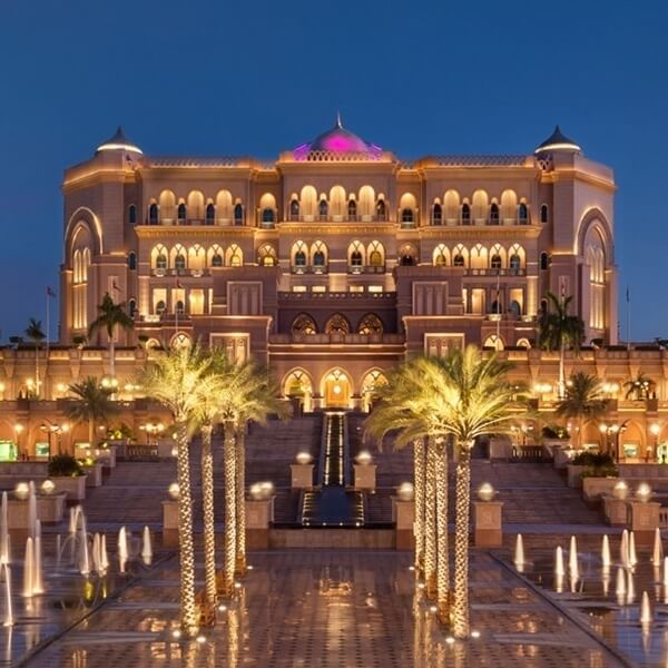 Khách sạn Emirates Palace tọa lạc bên bờ biển tại thủ đô Abu Dhabi, thuộc UAE (các Tiểu vương quốc Ả Rập thống nhất).